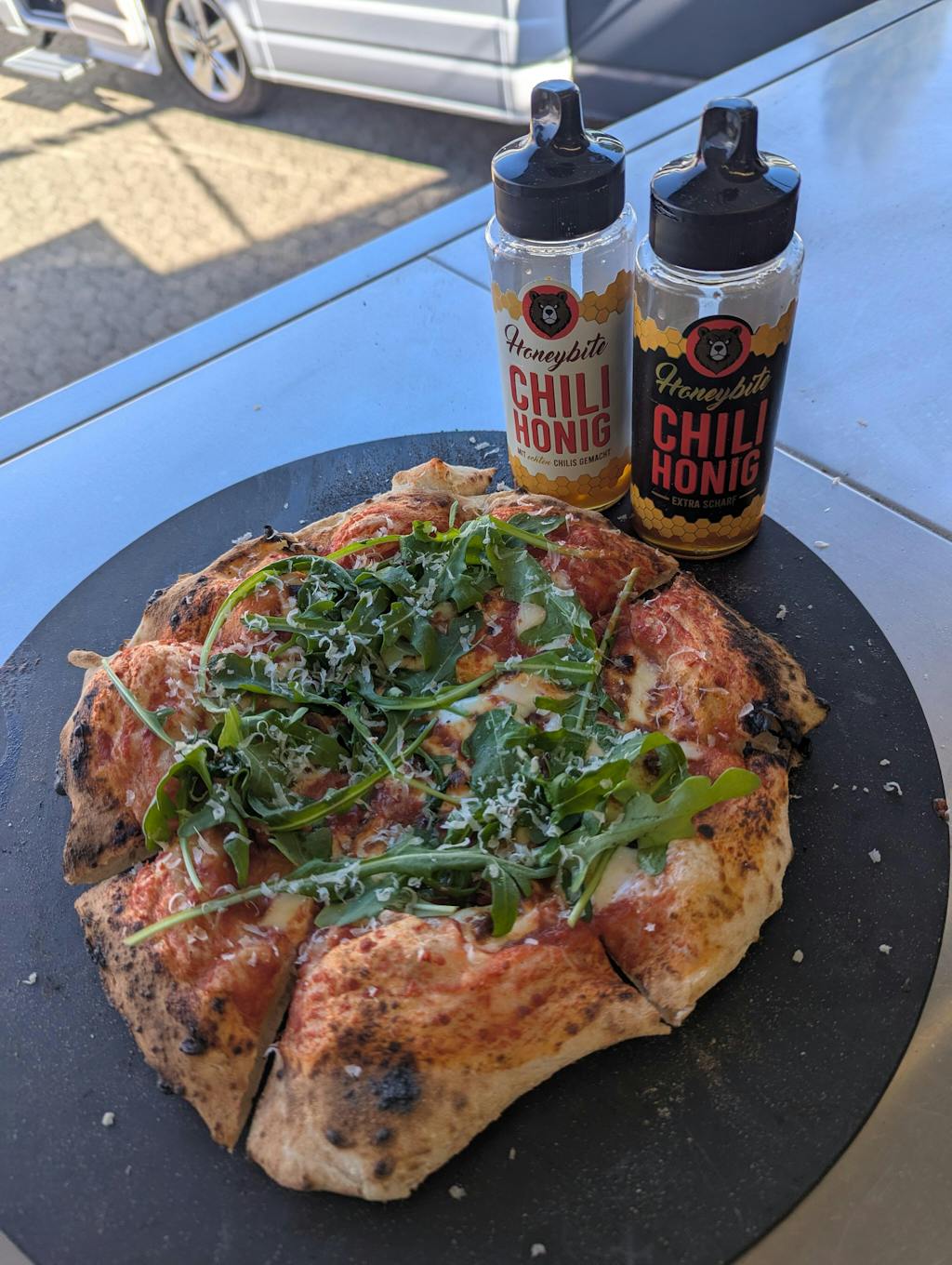🍕 Besonders auf Pizza überzeugt unser extra scharfer Hot Honey. Eine feurig scharfe Pizza mit der gewissen Süße als Gegenstück ist wirklich unschlagbar.